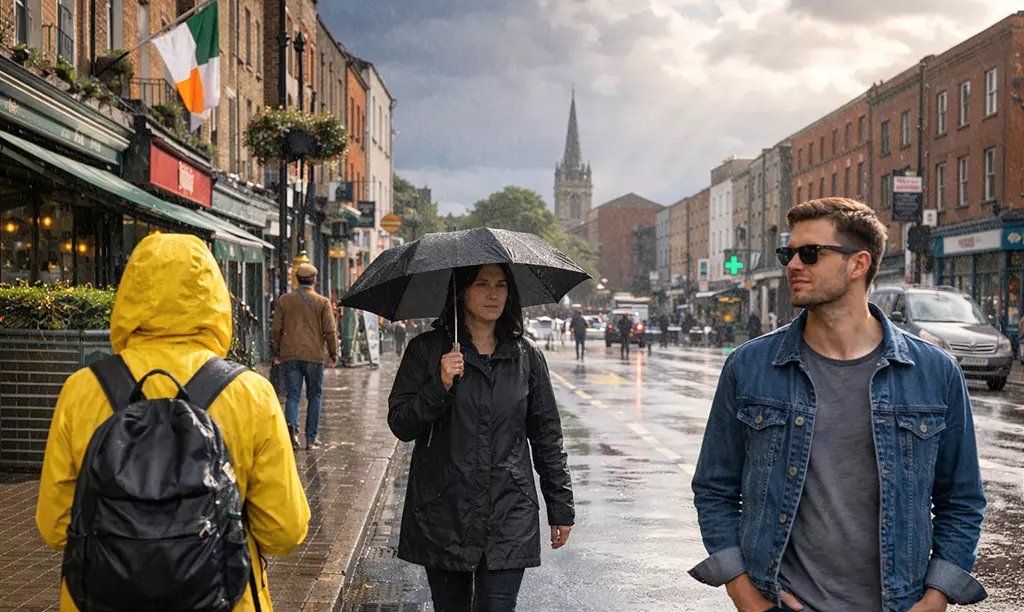 Diferente de países tropicais, a chuva na Irlanda costuma ser leve ou moderada, muitas vezes em forma de garoa ou pancadas rápidas. Dias inteiros de chuva contínua existem, mas não são a regra.